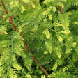 Дерево із конусоподібною кроною, гілки звислі. Хвоя плоска, 1 - 3 сантиметри довжини, розташована дворядно і супротивно, м'яка, зверху світло-зелена, щорічно скидає на зиму всю хвою з несучими її укороченими пагонами. Невибаглива до умов вирощування, тіневиносливе, але більш швидко росте на відкритій місцевості.
